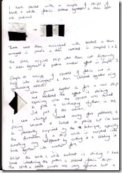In sample 8 above I wanted to experiment with a more irregular layout and longer vertical / horizontal strips. I’m fascinated by the markings on the pell’s owl and ways in which I could achieve it. I’d tried this sample initially using patterned and plain white papers but decided to add black afterwards as I felt it was more effective ,this is a photo [above] to show how different it looked.